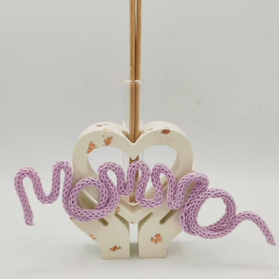 Diffusore per ambiente "un cuore tra le mani" e scritta mamma in tricotin